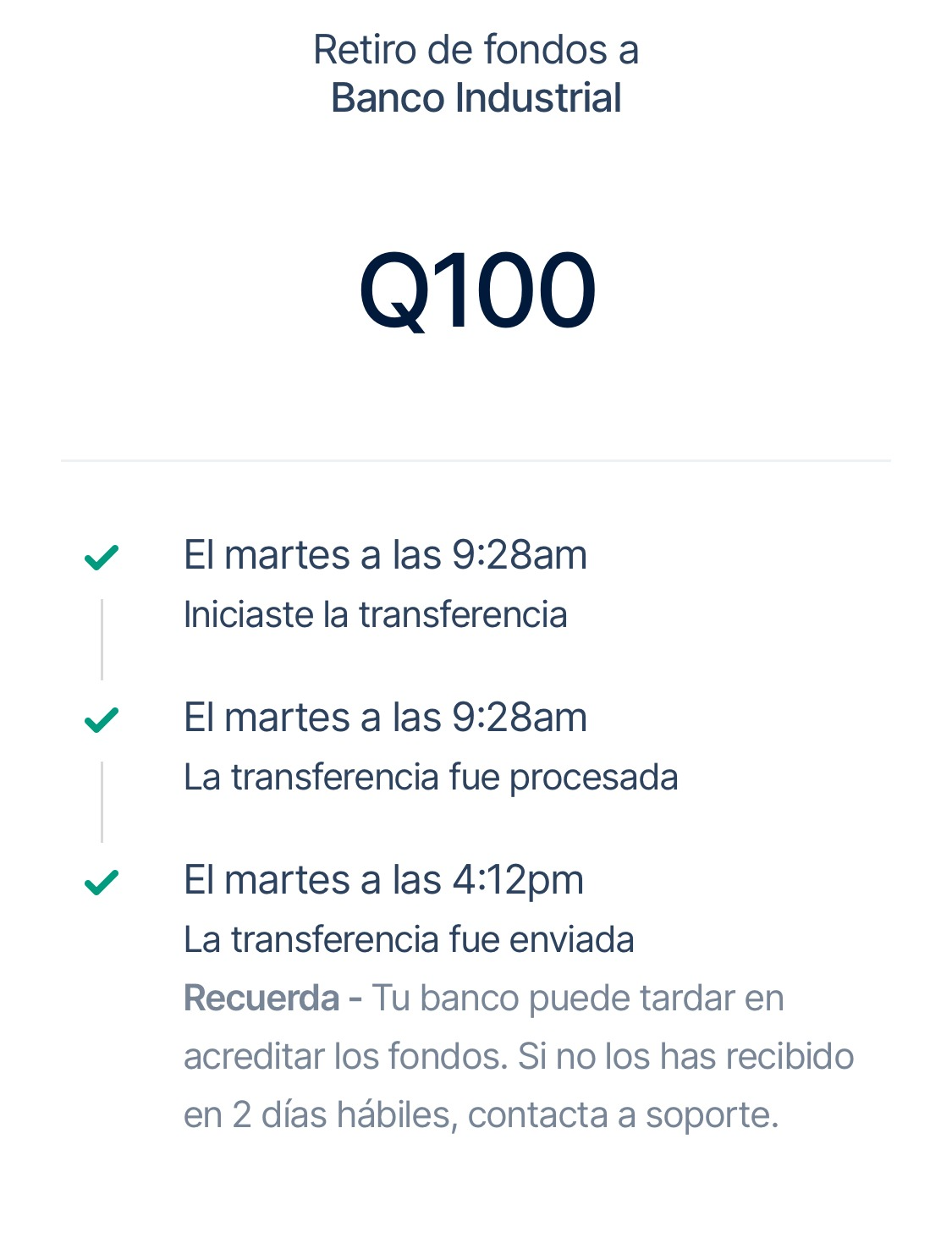 Antes de solicitar tu retiro podrás ver un estimado de cuando llegara tu transferencia.
