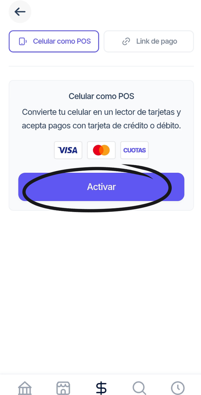 Selecciona la opción “Celular como POS” y luego haz clic en “Activar”.