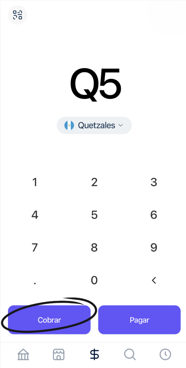 Haz clic en el botón “Cobrar” e ingresa cualquier monto. Esto activará las opciones de cobro disponibles en tu cuenta.